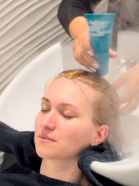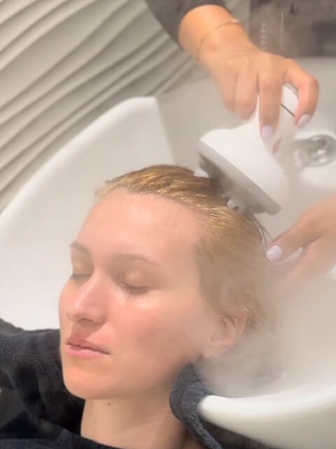 Transform your hair and invigorate your scalp with Therapeutic Head Spa Treatment. Our luxurious Japanese Head Spa treatments are designed to provide you with a rejuvenating experience that leaves your scalp feeling refreshed and your hair looking its best. This treatment includes : Microscopic consultation, hair and scalp cleansing, steam mist, head massage and relaxing water therapy. (Blow out not included)